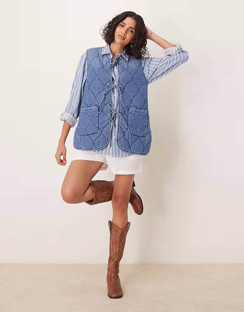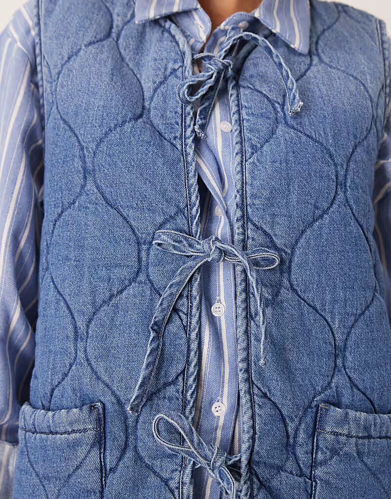 Джинсовый стеганый жилет ASOS DESIGN, средне-голубой оттенок