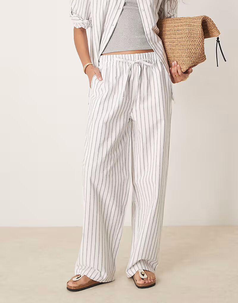 Льняные брюки ASOS DESIGN в черную полоску без застежек
