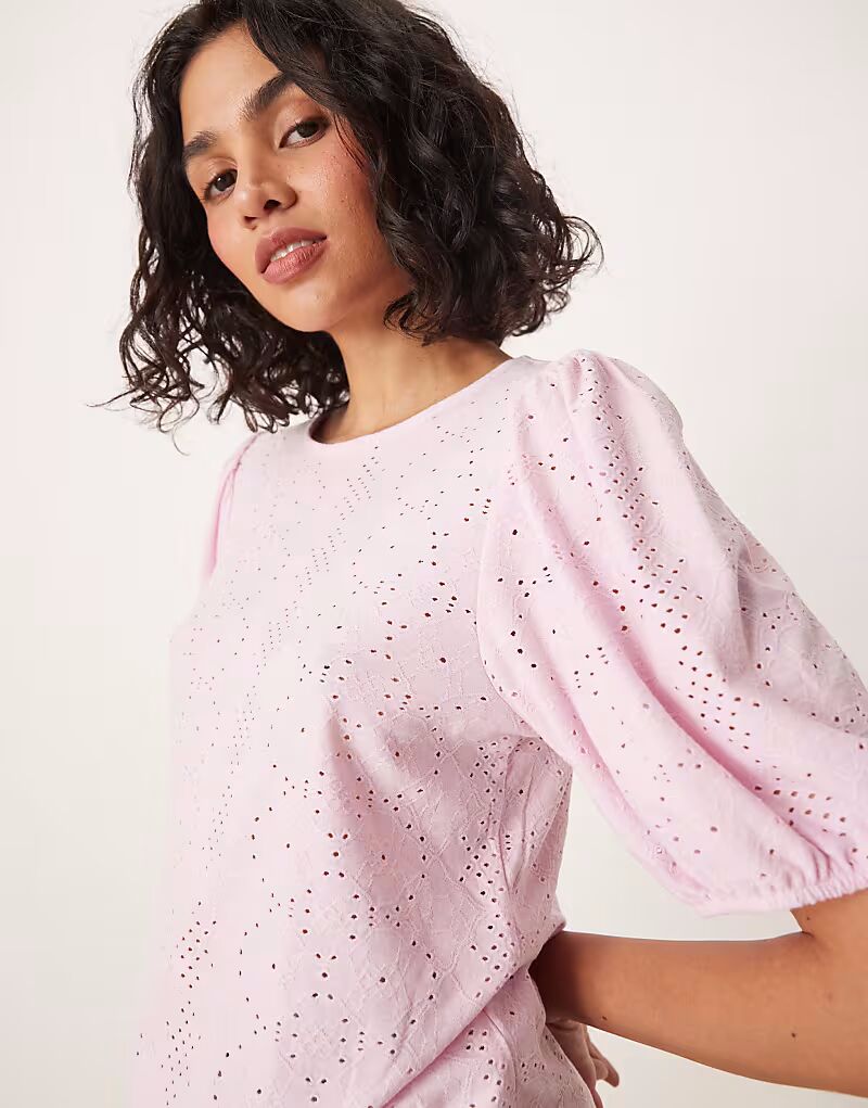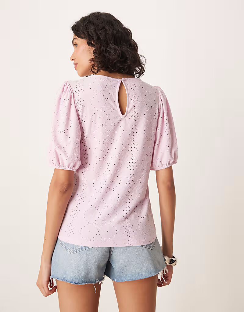 Футболка Vila Broderie с рукавами-буфами цвета орхидеи