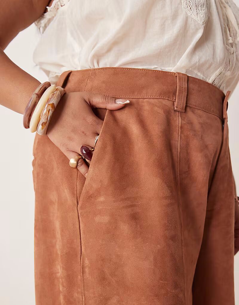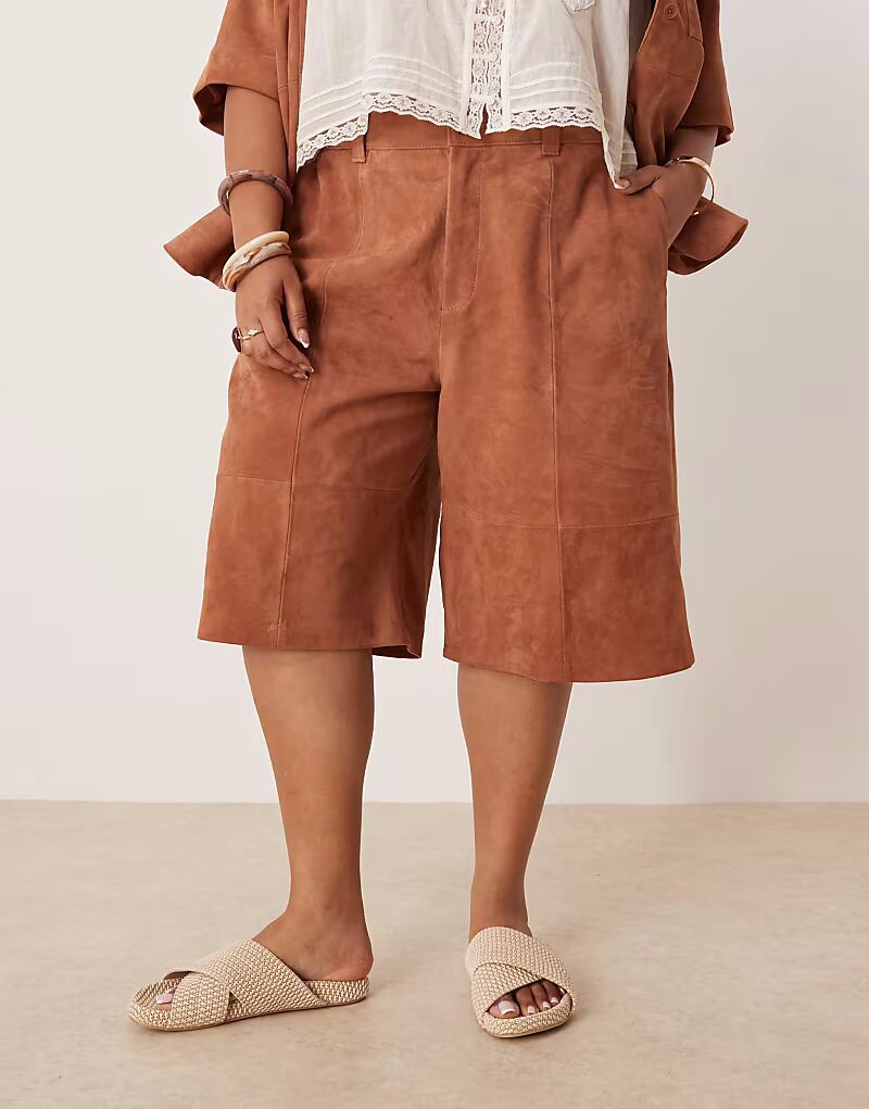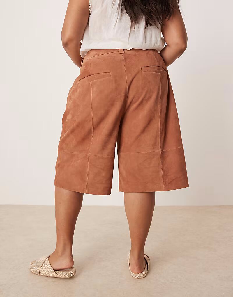 Замшевые шорты-бермуды ASOS DESIGN Curve, бежевого цвета