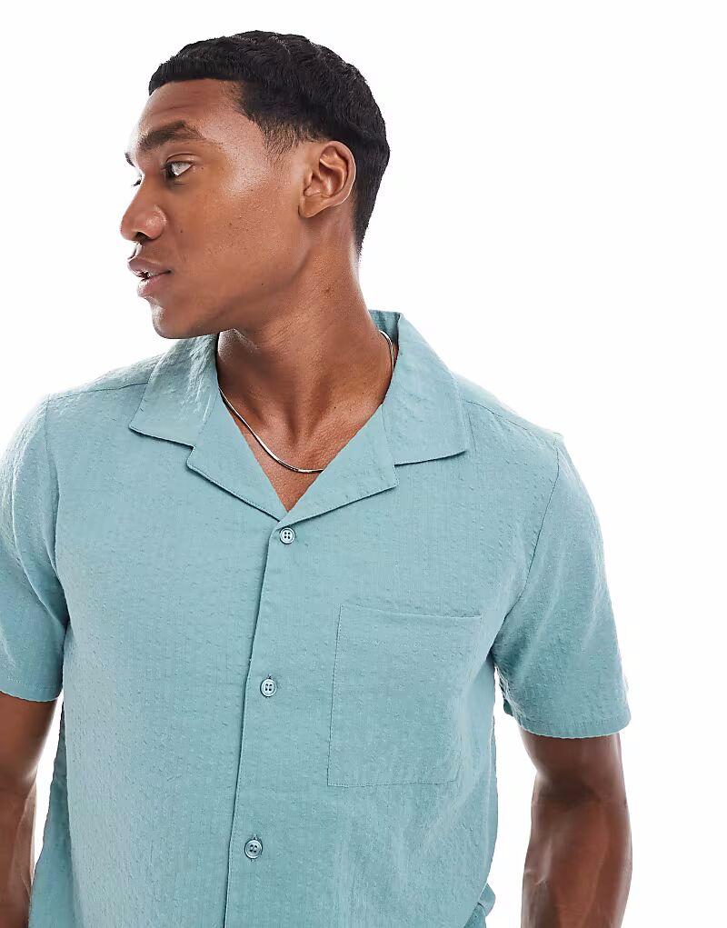 Рубашка New Look из сирсакера в цвете «бирюза»