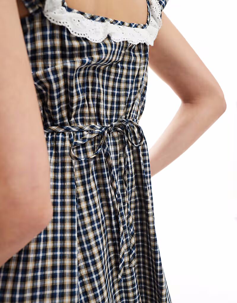 Мини-платье New Look с отделкой ришелье в клетку, черное