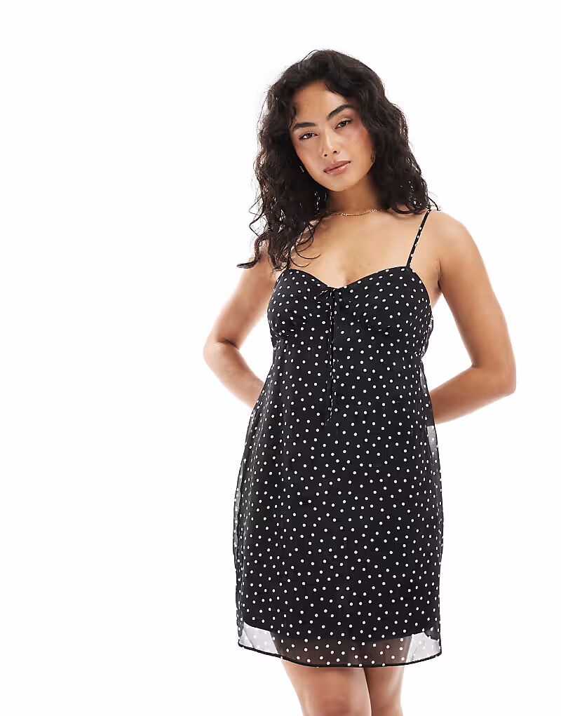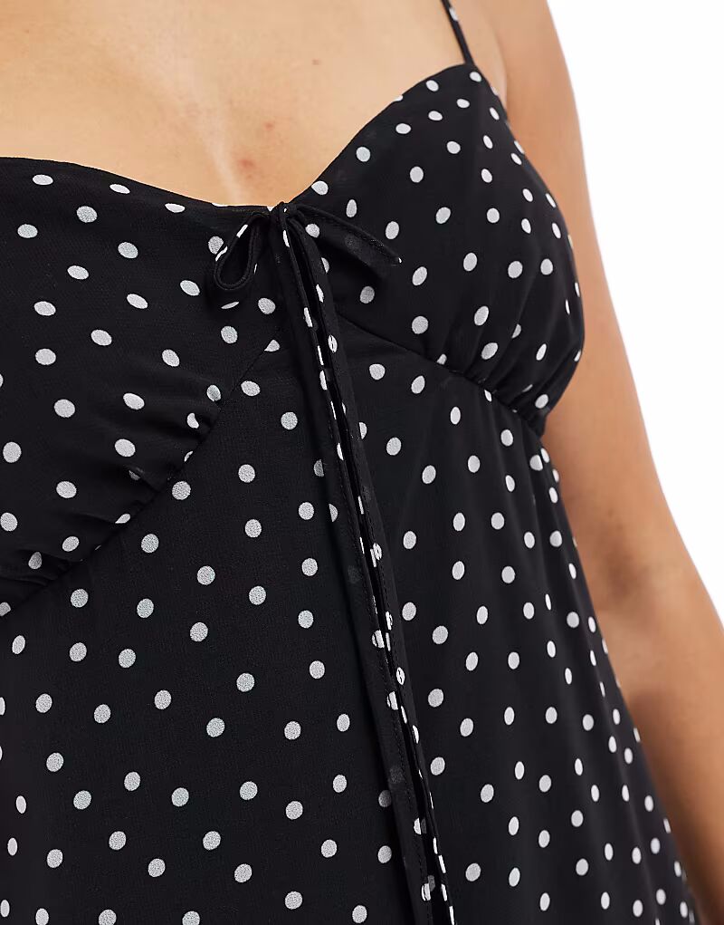 Мини-платье New Look из шифона с бретельками в черный горошек