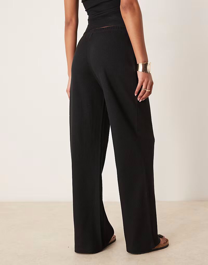Широкие брюки из вафельной ткани ASOS DESIGN черного цвета
