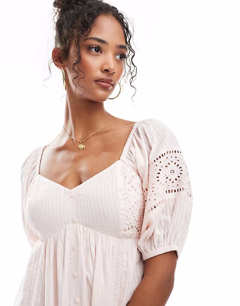 Мини-платье New Look с вышитыми пуговицами розового цвета