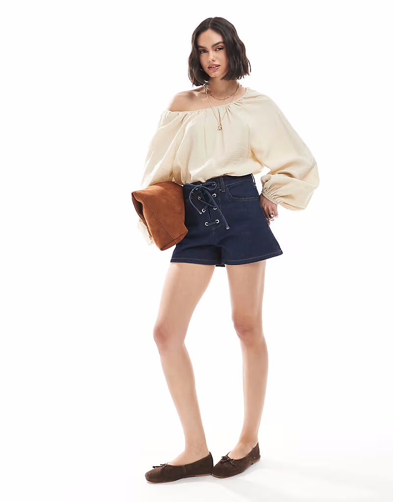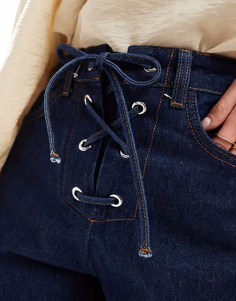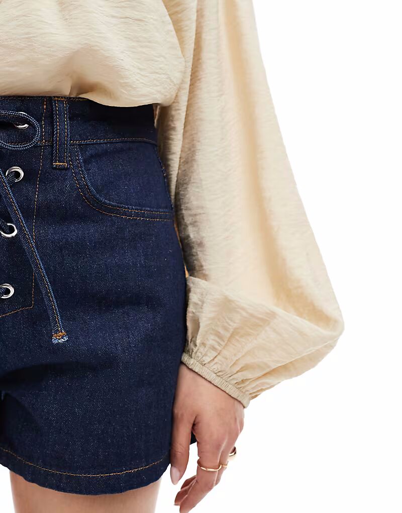 Джинсовые шорты ASOS DESIGN цвета индиго с завязкой спереди