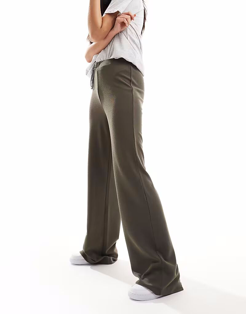 Широкие брюки ASOS DESIGN из плотной ткани в рубчик серого цвета