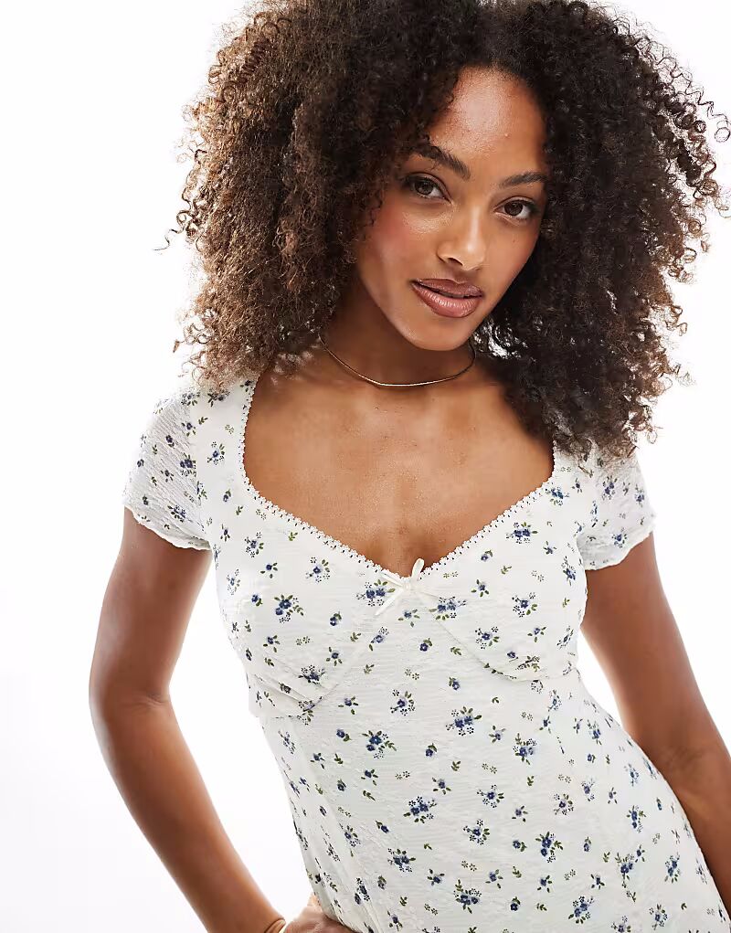 Мини-платье New Look в цветочек кремового цвета