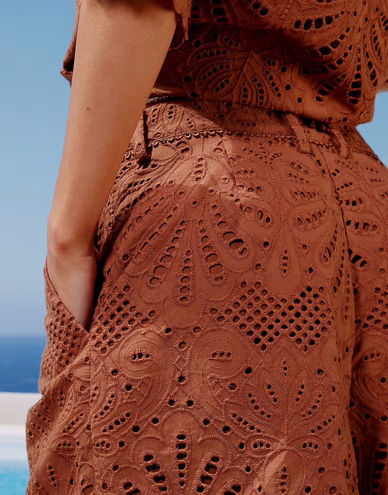 Ришелье (англ. Broderie anglaise): лёгкая ткань с вышитым, вырезным узором