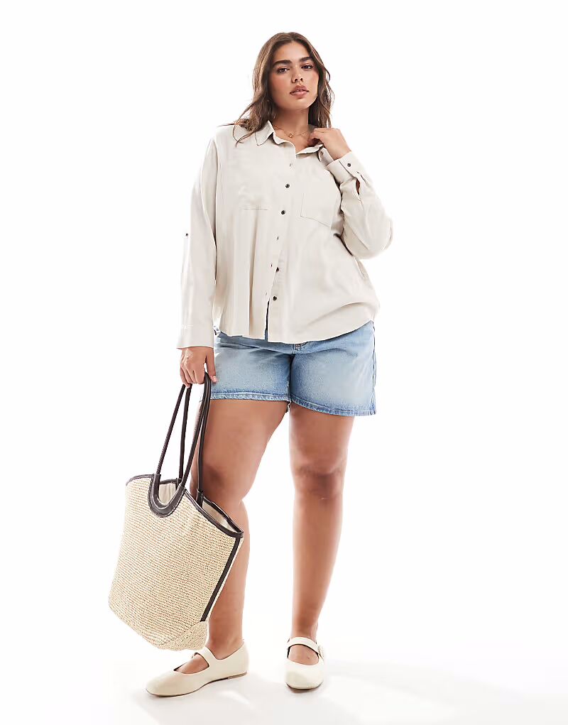 Рубашка ONLY Curve из льняной смеси в цвете «камень»