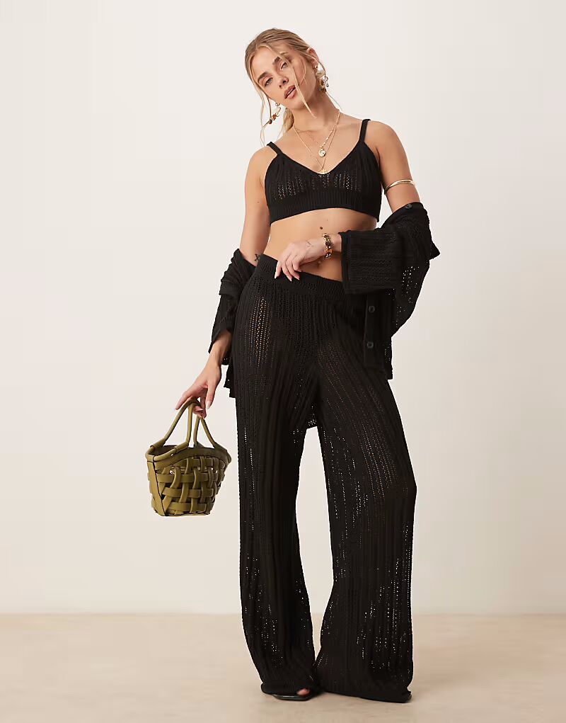 Комплект из бралета ASOS DESIGN с ажурной строчкой, черный