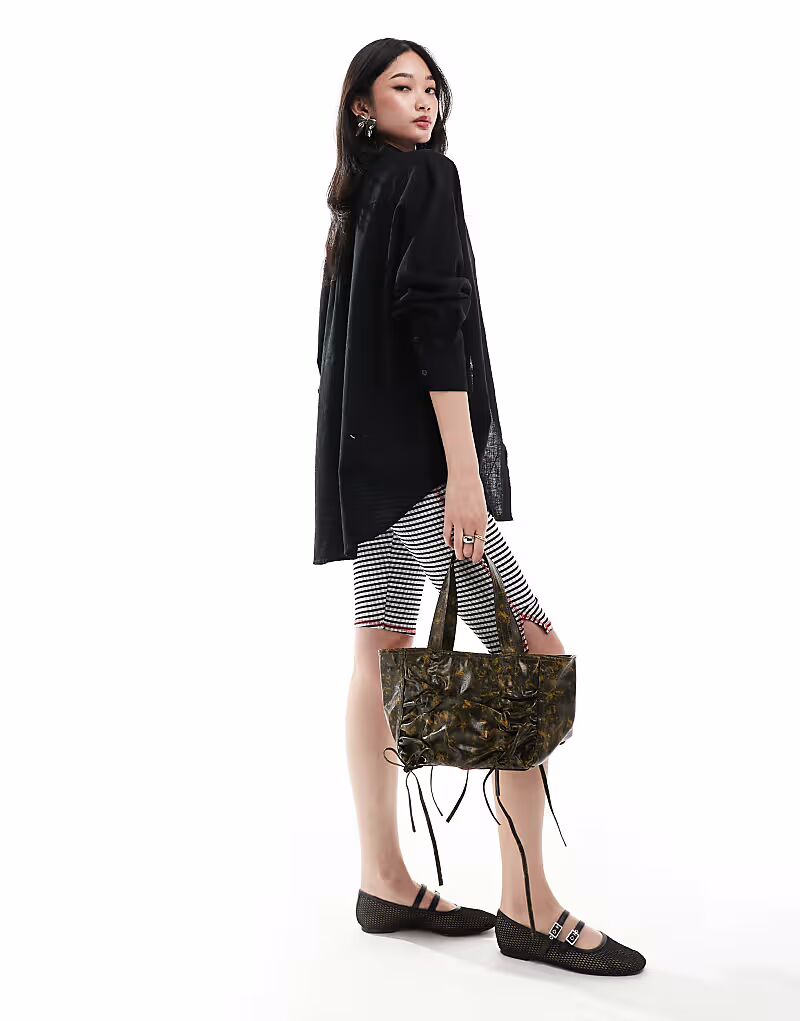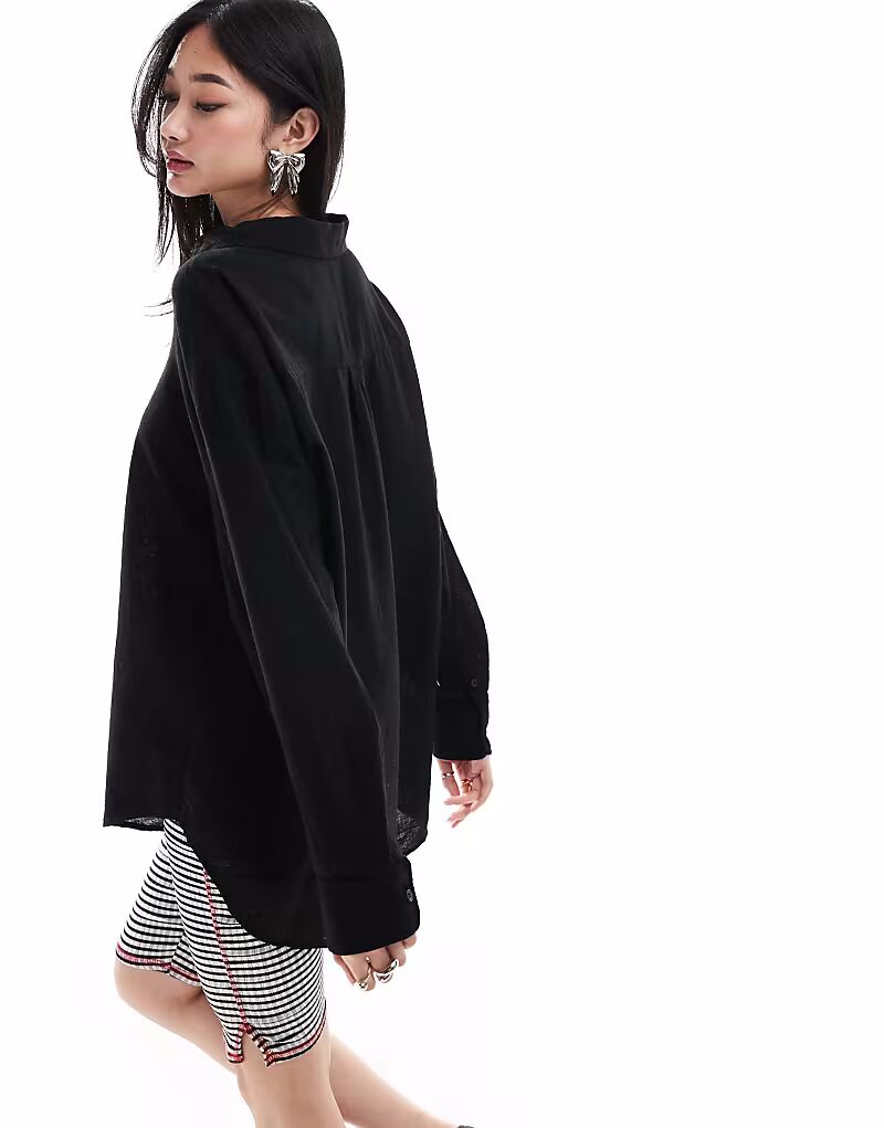 Рубашка оверсайз из льняной смеси Monki черного цвета