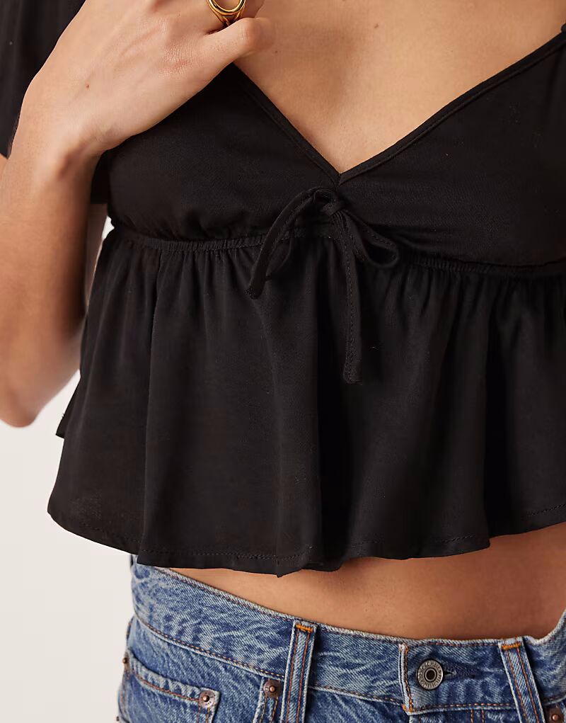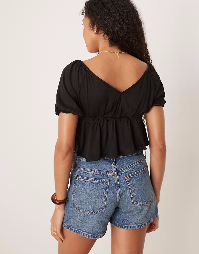 Черная блузка с баской и завязкой спереди