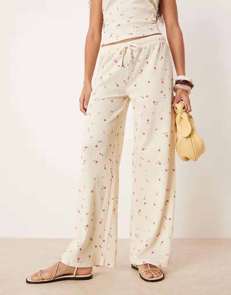 Широкие брюки-вафельницы ASOS DESIGN с лимонным принтом