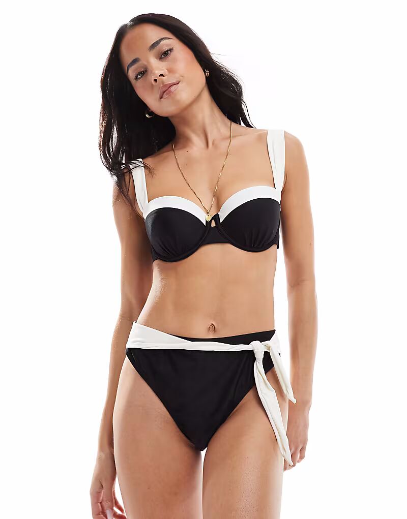 Верх бикини New Look на косточках, цветные блоки, черный