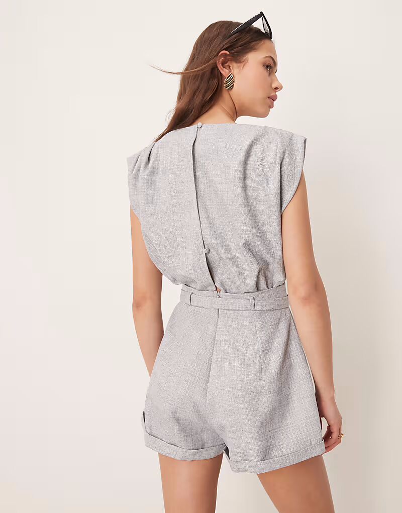 Короткий комбинезон ASOS DESIGN с поясом, серый