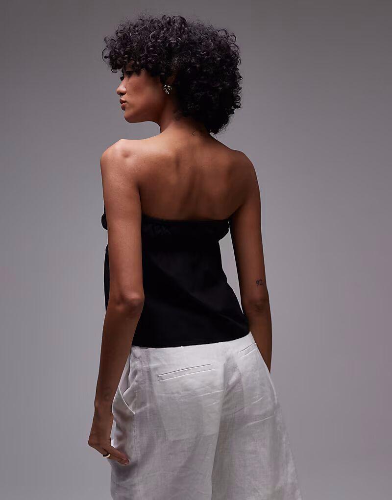 Топ без бретелек с ритмичными сборками, черный