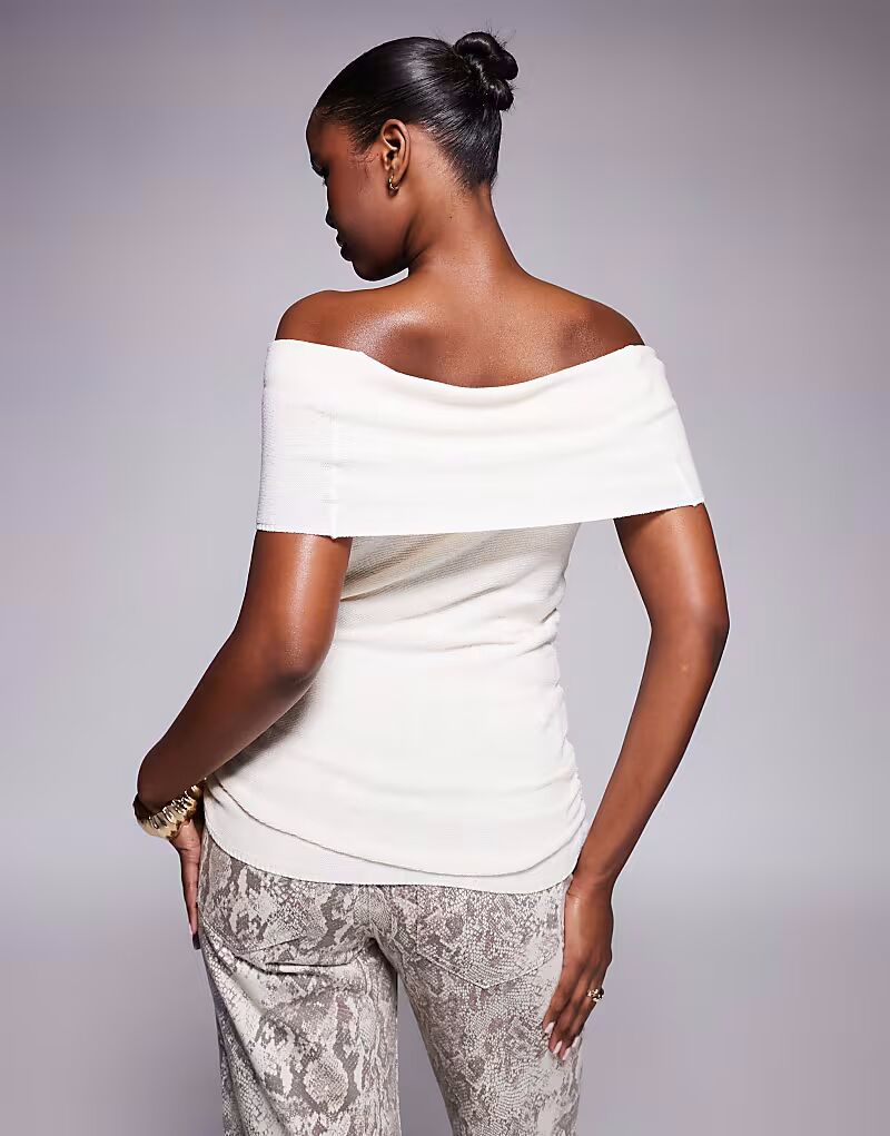 Вязаный топ-бардо ASOS DESIGN цвета экрю