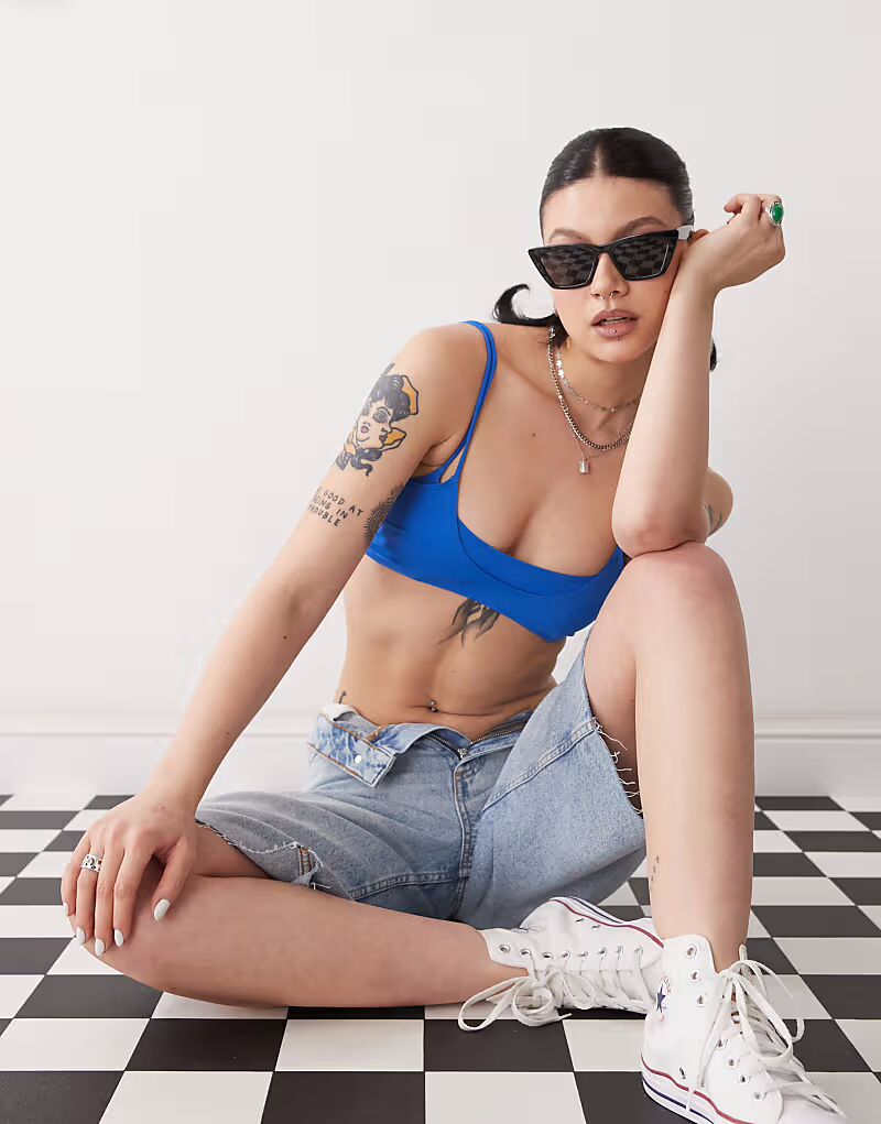 Многослойный бикини-топ буднего дня синего цвета