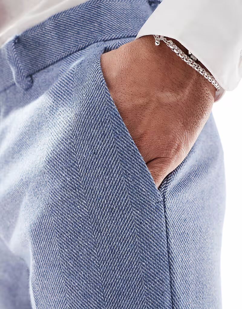 Узкие шерстяные брюки ASOS DESIGN синего цвета