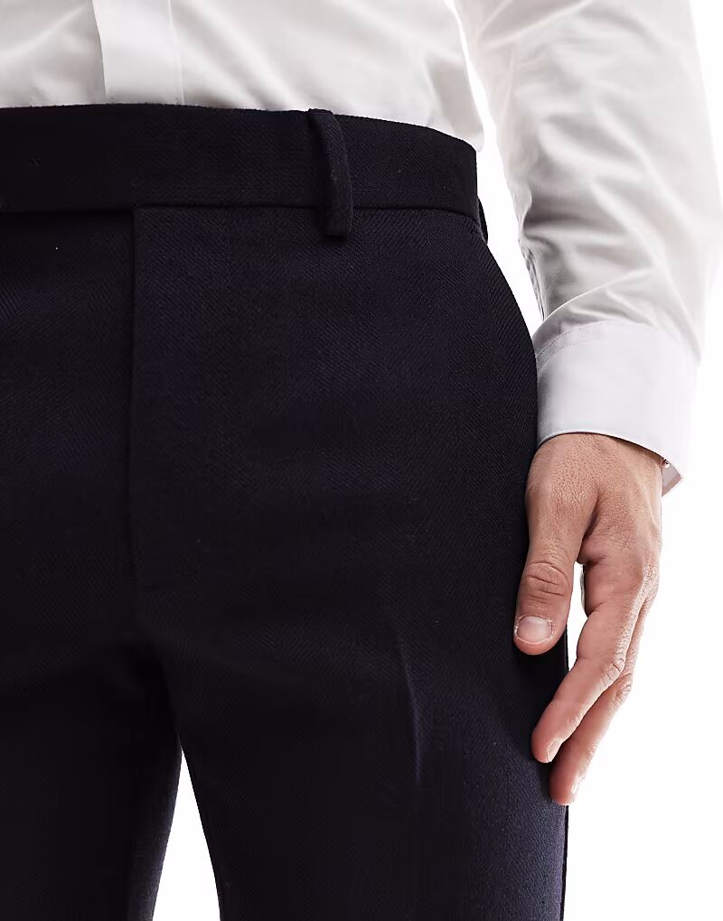 Узкие шерстяные брюки ASOS DESIGN темно-синего цвета