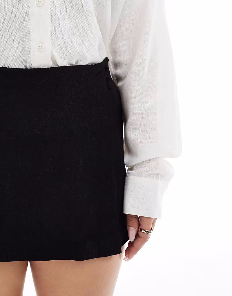 Юбка-шорты с запахом и льняным эффектом ASOS DESIGN черного цвета
