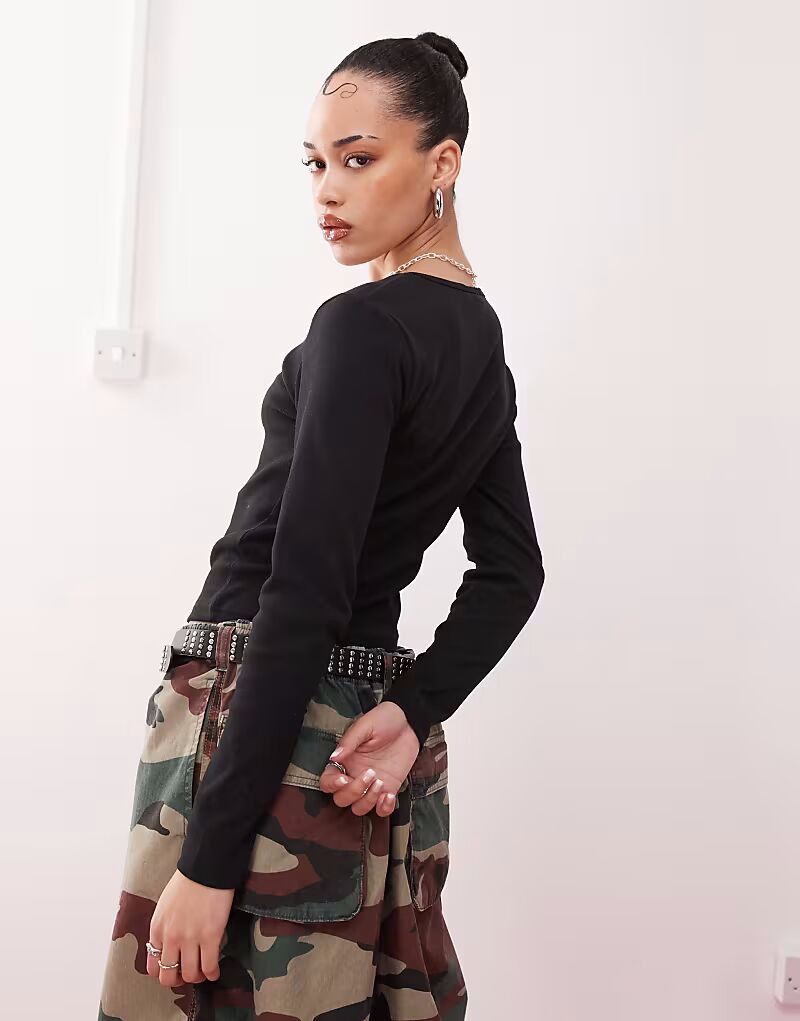 Топ COLLUSION с длинными рукавами и квадратным вырезом, черный