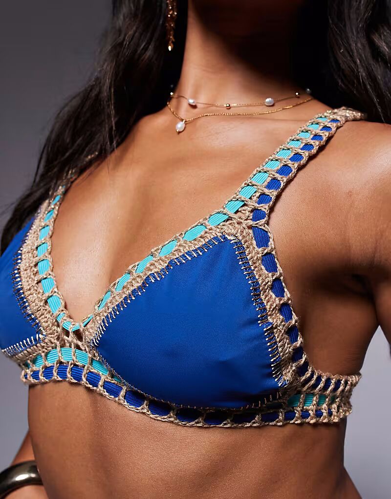 Верх бикини Moda Minx с отделкой крючком, темно-синего цвета