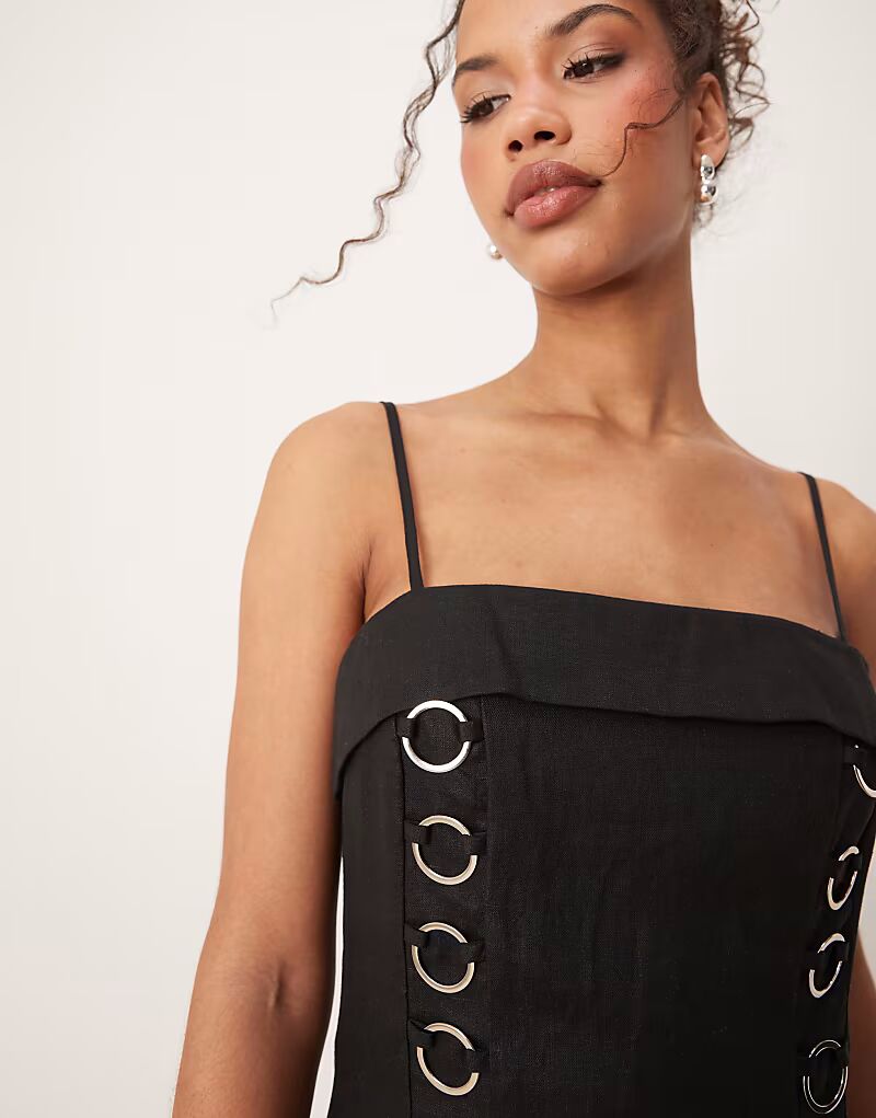 Льняное мини-платье VRG GRL Alessa с люверсами черного цвета