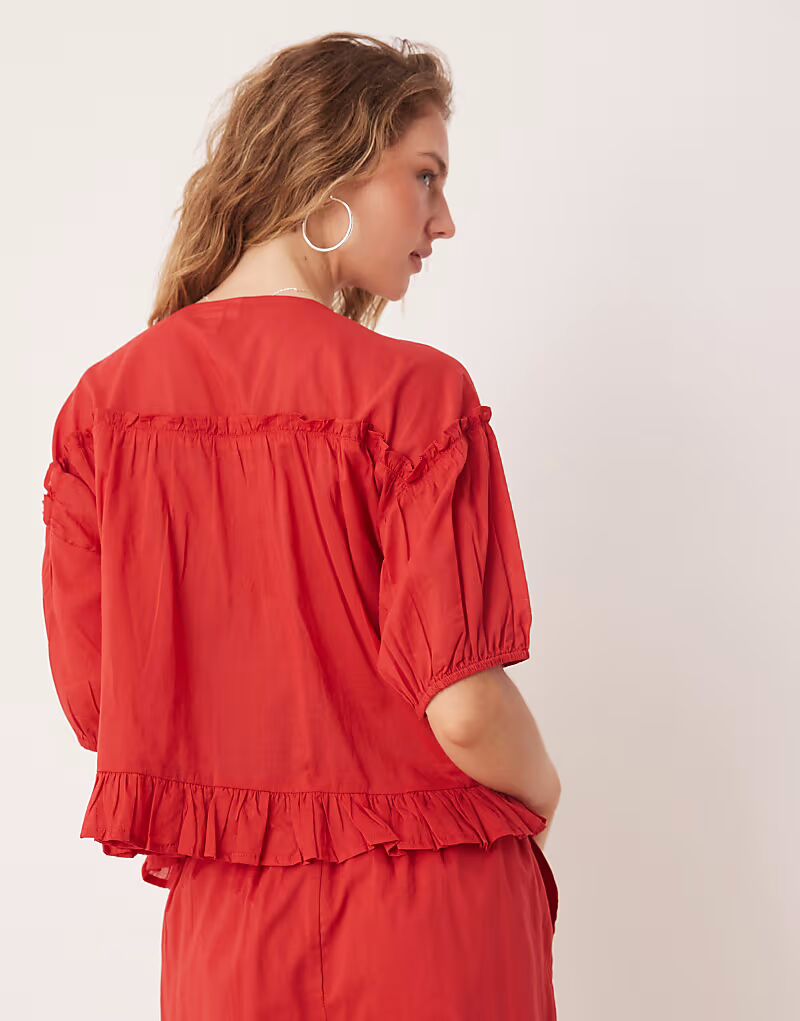 Блузка с рукавами-буфами Neon Rose и бантом, красного цвета