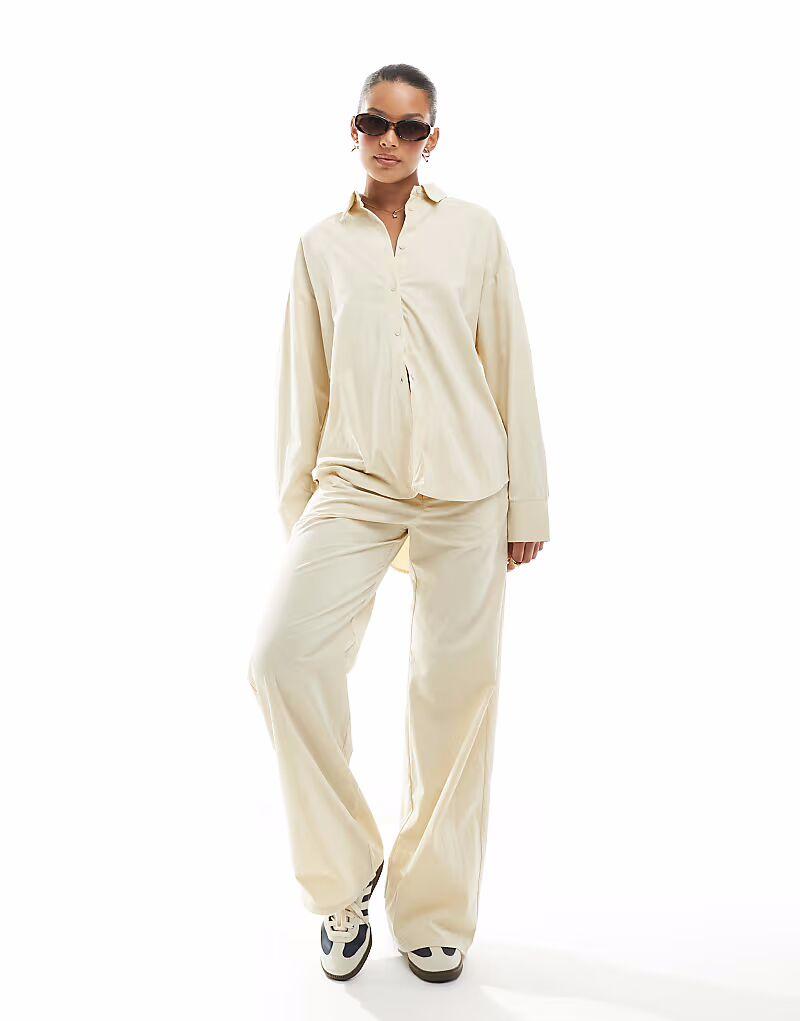 Рубашка свободного кроя Pull&Bear кремового цвета