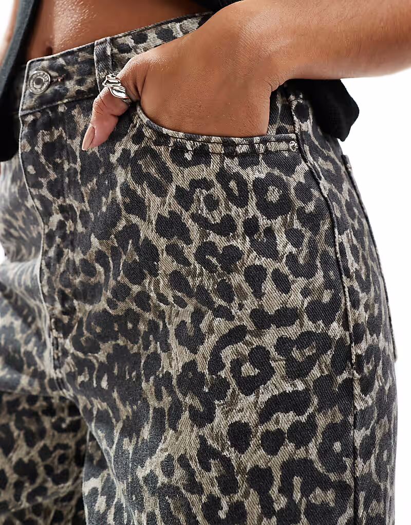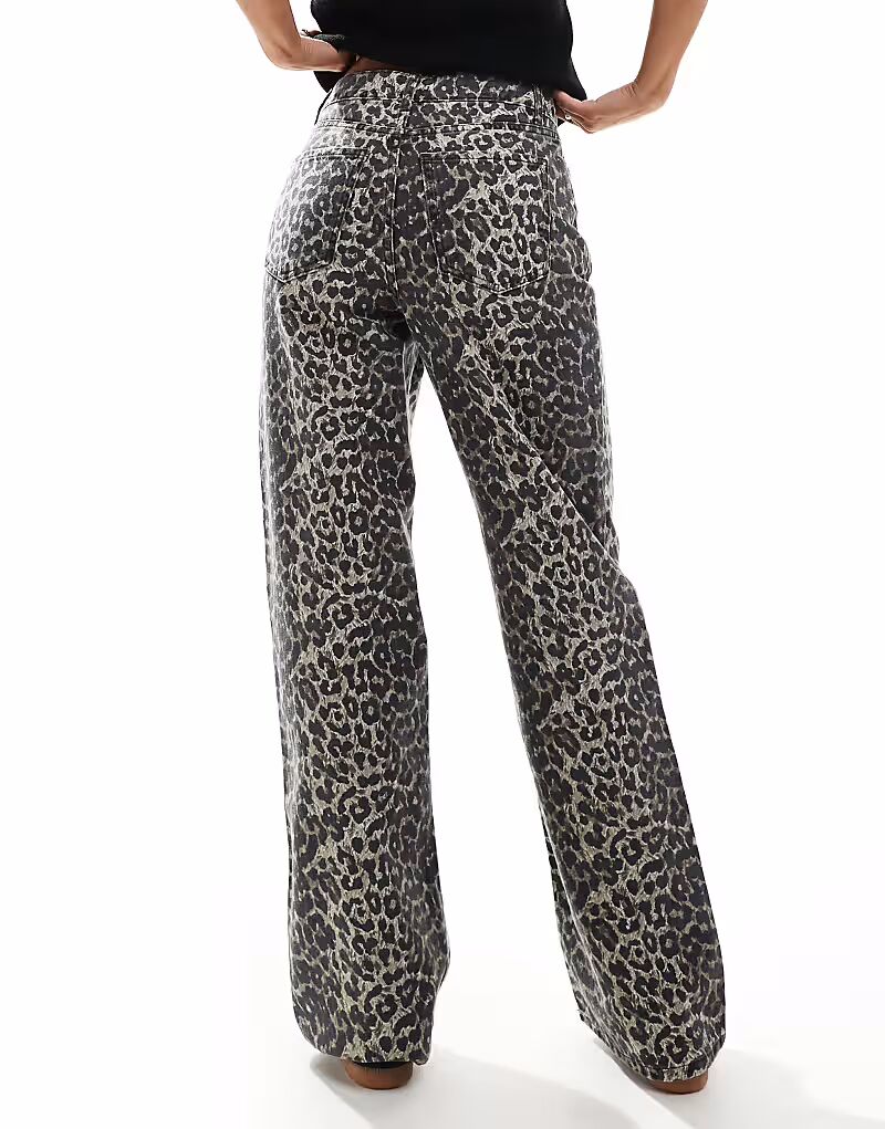 Джинсы New Look с широкими штанинами и леопардовым принтом
