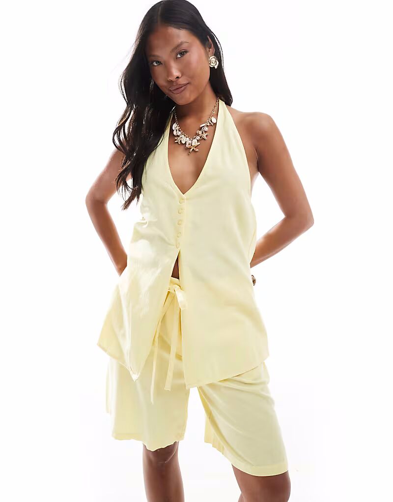 Жилет Vero Moda Petite с воротником-халтером, бледно-желтый