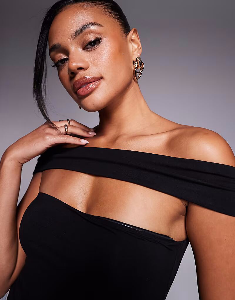 Боди с открытыми плечами Oh Polly Lida черного цвета