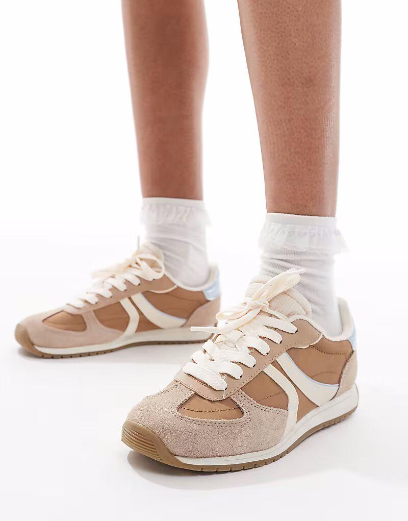 Кроссовки Stradivarius из кожи бежевого цвета