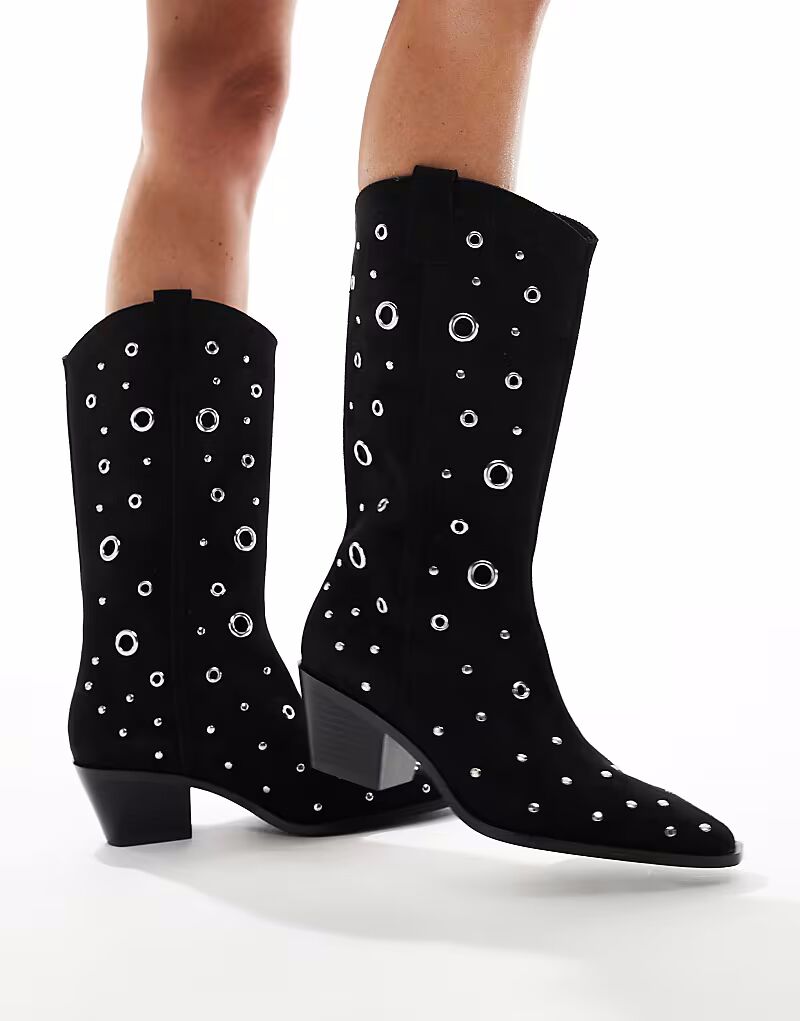 Вестерн-ботинки Stradivarius из черной замши с заклепками