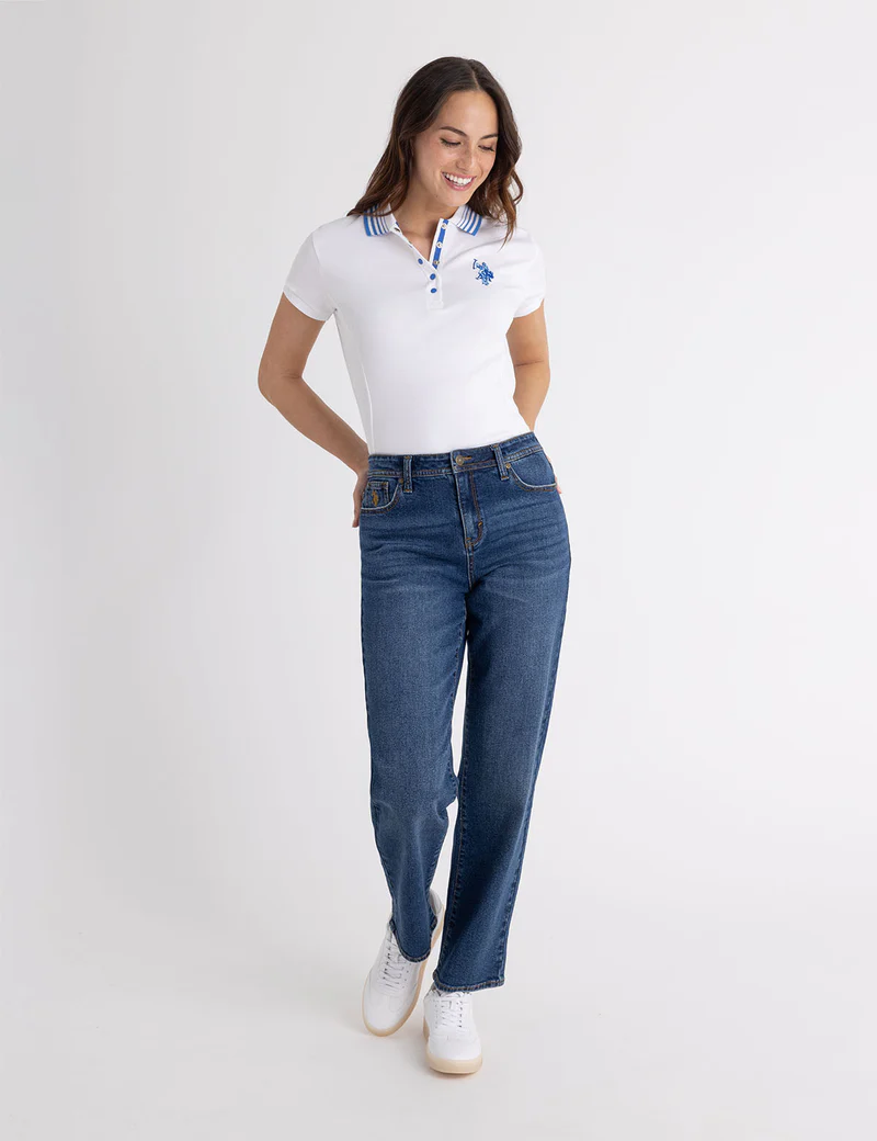 Рубашка-поло с полосатым воротником и пике от US Polo Assn. сочетает в себе четкий силуэт и изысканные детали, являясь неотъемлемой частью женского гардероба. Изготовленная из дышащего хлопкового пике, она имеет классический воротник с яркими контрастными полосками, планку на двух пуговицах и короткие рукава с ребристыми манжетами. Боковые разрезы подчеркивают расклешенный подол, создавая удобную посадку. Миниатюрный вышитый логотип US Polo Assn. на груди завершает изысканный образ. На модели размер S.