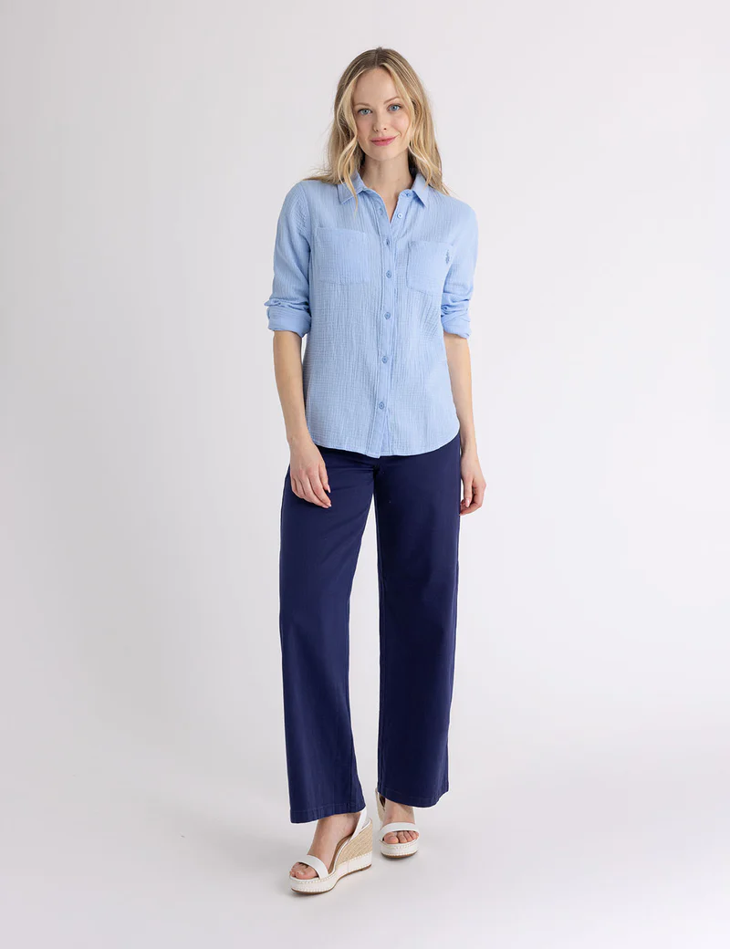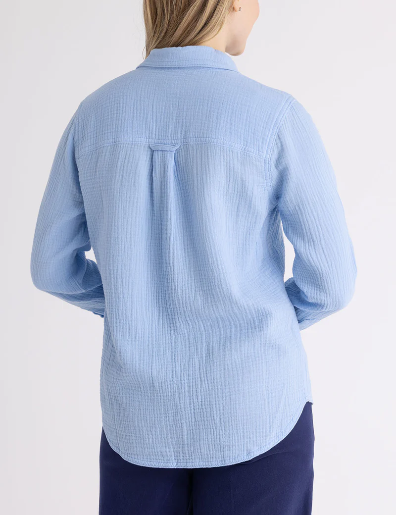 Рубашка из жатой ткани с длинными рукавами.