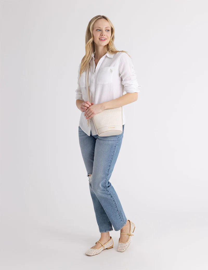 Рубашка из жатой ткани с длинными рукавами.