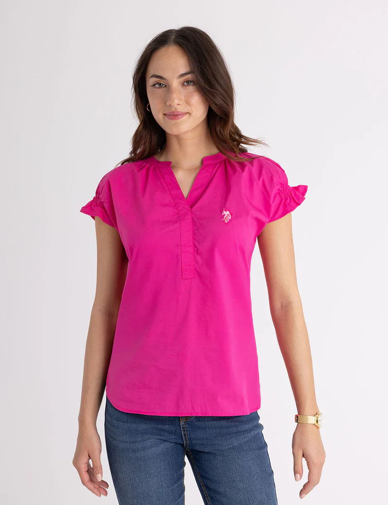 Топ с разрезом на горловине, рукавами-крылышками и поролоном.
