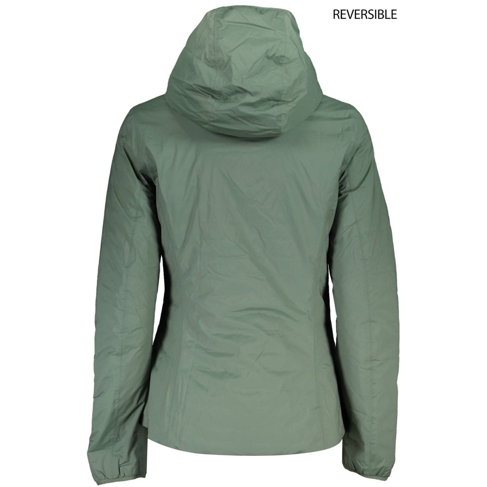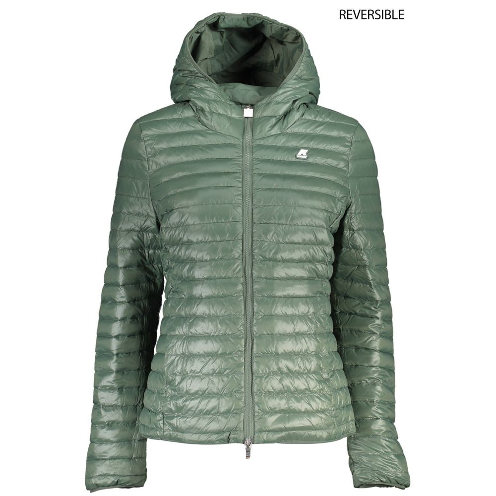 Пуховик с длинными рукавами и капюшоном, двухсторонний, 2 внешних кармана, 2 внутренних кармана, аппликация, логотип