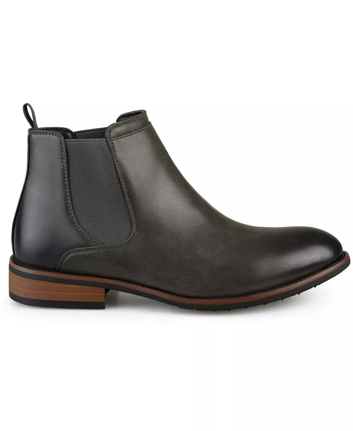 Высокие ботинки Chelsea от Vance Co. имеют верх из высококачественной искусственной кожи, который доходит до щиколоток, с тонкой верхней строчкой, окаймляющей эластичные боковые панели. Каблуки и подошвы из красного дерева с имитацией древесины завершают образ.