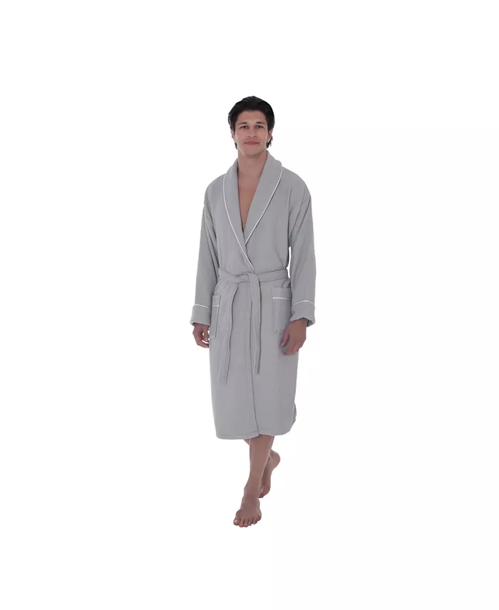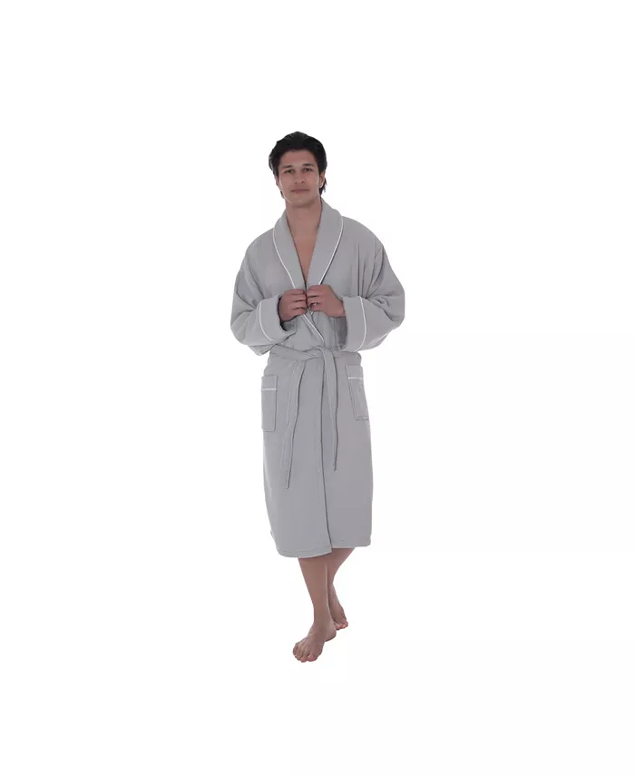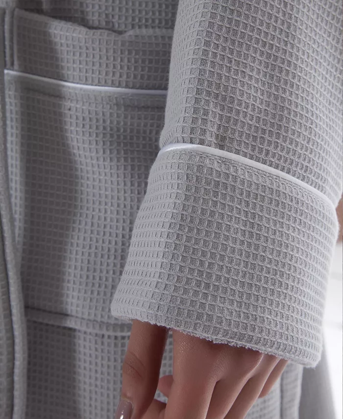 Впитывающая махровая ткань внутри сохранит вас в исключительной сухости и исключительных удобствах. Украшенная изящной атласной отделкой на воротнике, манжетах и ​​карманах, вафельная ткань снаружи этих халатов излучает гладкий изысканный вид. Естественно впитывающая, обеспечивая комфорт и роскошный стиль.