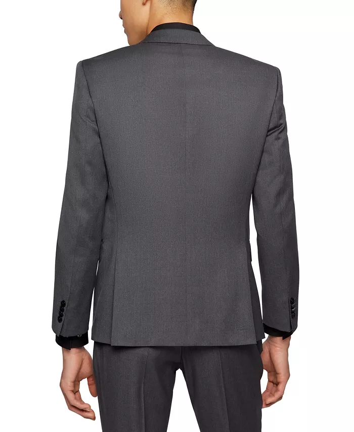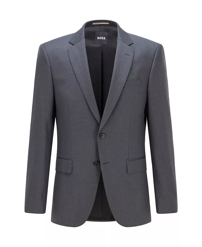Универсальный костюм от BOSS menwear. Однобортная застежка, лацканы с заостренным воротом и подкладка с логотипом, выполнен из натуральной шерсти, сотканной в технике саржевого переплетения для создания тонкой текстуры.