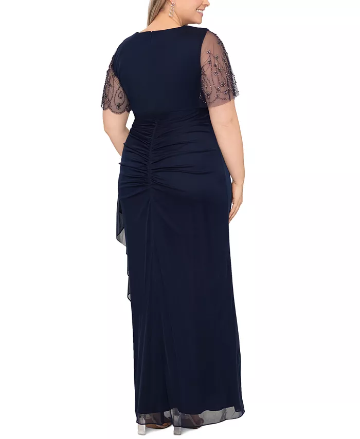 Платье с кружевными рукавами Plus Size XSCAPE, синий