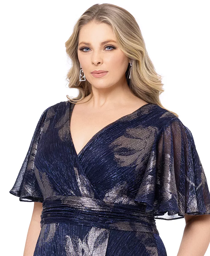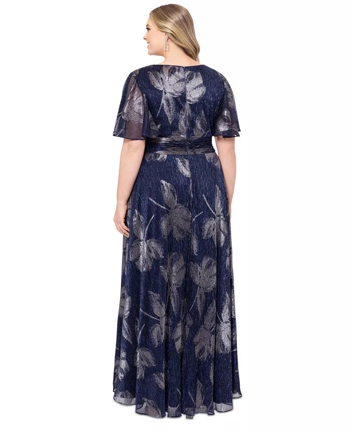 Мерцающий металлический принт придает еще больше красоты этому платью А-силуэта больших размеров от Betsy & Adam.