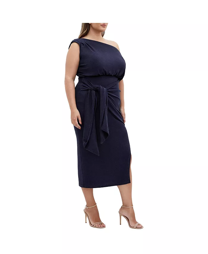 City Chic кроит для изгибов. Пожалуйста, проверьте нашу таблицу размеров, чтобы найти свой лучший размер. City Chic предлагает двойную размерную сетку для одежды. Обратите внимание на следующие преобразования: XXS/12, XS/14, S/16, M/18, L/20, XL/22, XXL/24. На модели City Chic размер S/16, рост 178 см. Бюст: Приталенный. Талия: Приталенная. Бедра: Приталенные. Длина: Это платье размера plus size имеет длину миди. Измерение по центру спины: 114 см/45 дюймов. Асимметричный дизайн плеча Эластичная талия Деталь с завязкой спереди, металлическая отделка, подкладка для комфорта, длина мини. Лайкра/Спандекс Ручная стирка