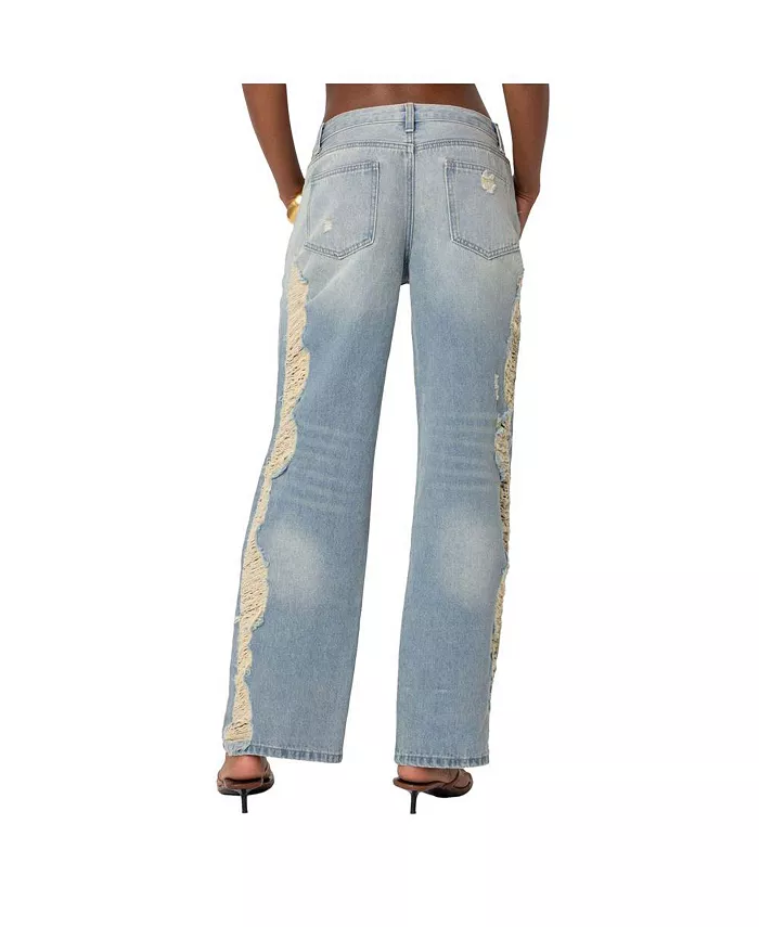 Джинсы с потертостями по бокам и эффектом стирки Edikted, синий