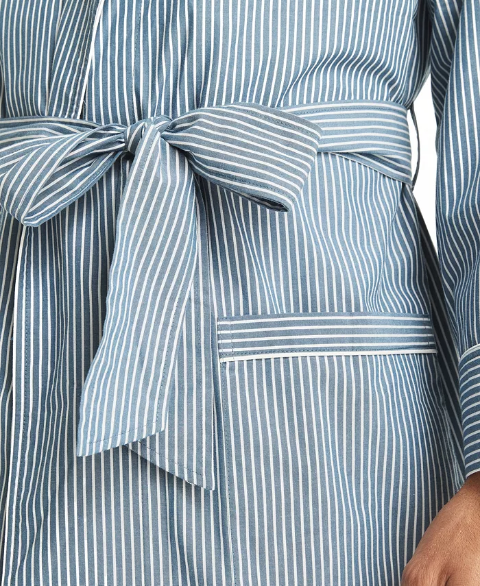 Этот халат с поясом, выполненный из мягкого хлопкового поплина ручной работы и украшенный полосатым принтом, идеально подходит для ношения после душа или перед сном.