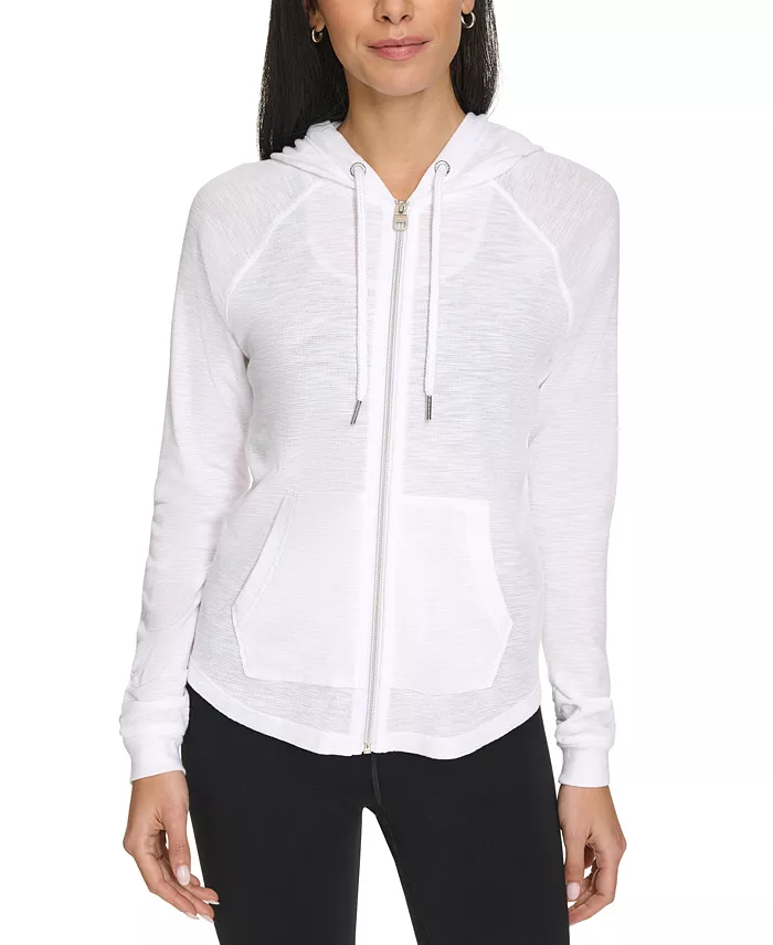 Худи с молнией и рукавами с защипами Calvin Klein, белый